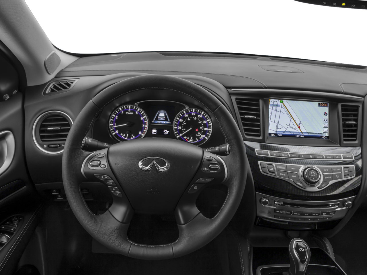 - Premium Plus Package, including around view monitor with front and rear sonar system, rain-sensing wipers, INFINITI InTouch navigation, and SiriusXM satellite radio