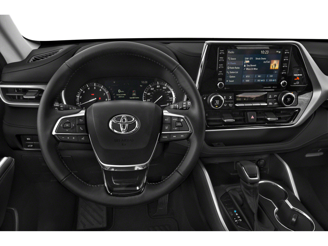 The Highlander's interior is designed with your comfort and convenience in mind. Enjoy the luxurious SofTex-trimmed heated front seats, the intuitive touchscreen infotainment system with Apple CarPlay and Android Auto, and the convenient power liftgate for easy access to the generous cargo area.