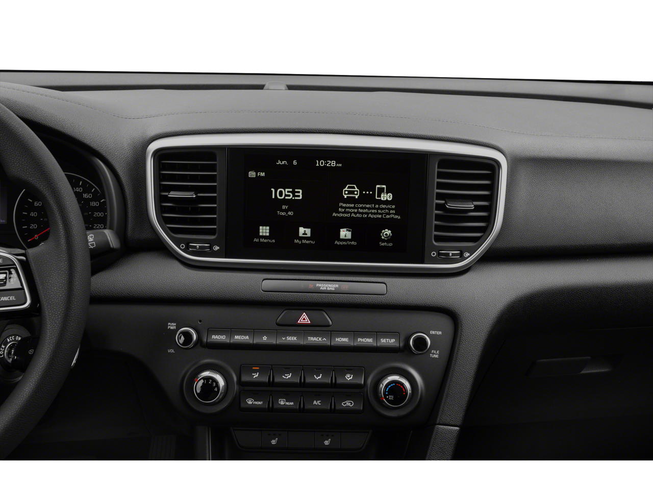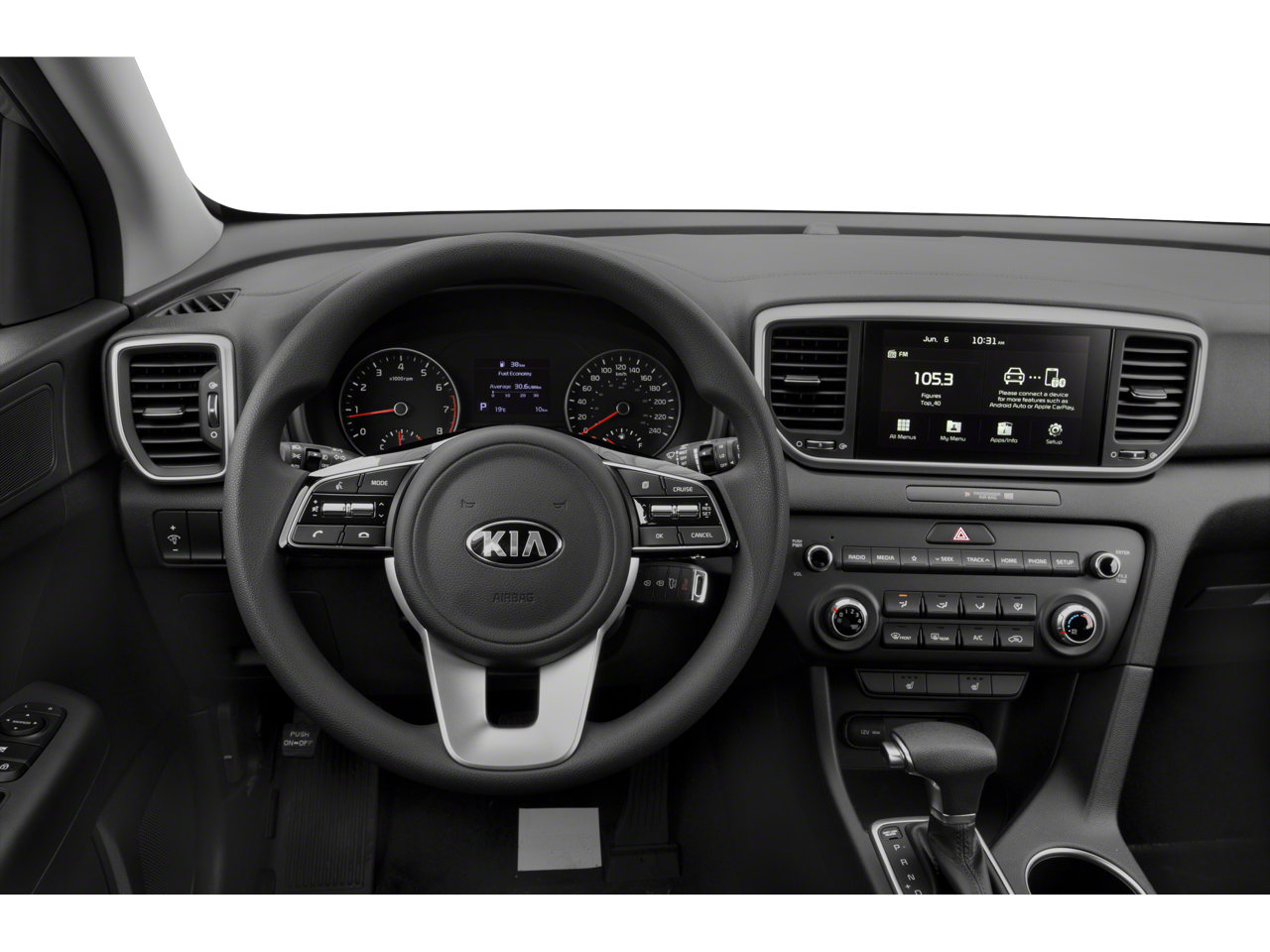 Step inside and discover a cabin that seamlessly blends style and functionality. The Sportage LX offers a wealth of features to enhance your driving experience, including: