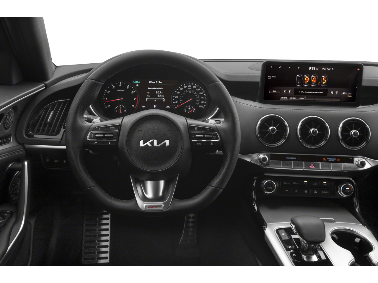 Connectivity is seamless with Apple CarPlay and Android Auto integration, while the harman/kardon premium audio system delivers an immersive listening experience. The Heads-Up Display and Smart Key with Push Button and Remote Start add to the Stinger's high-tech allure.
