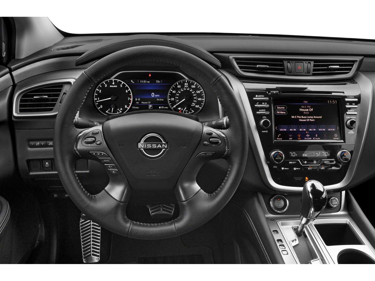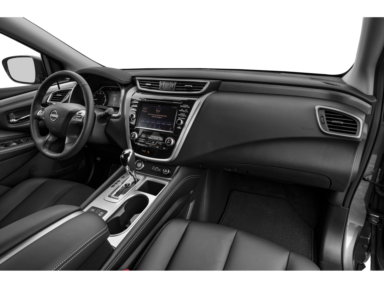 The interior of the Murano SV is a sanctuary of comfort and convenience. Slip into the supportive and heated front bucket seats, wrapped in luxurious leatherette-appointed trim. The 8-way power driver's seat and tilt/telescoping steering wheel allow you to find your perfect driving position. Stay connected with the advanced NissanConnect infotainment system, which seamlessly integrates your smartphone via Apple CarPlay and Android Auto.