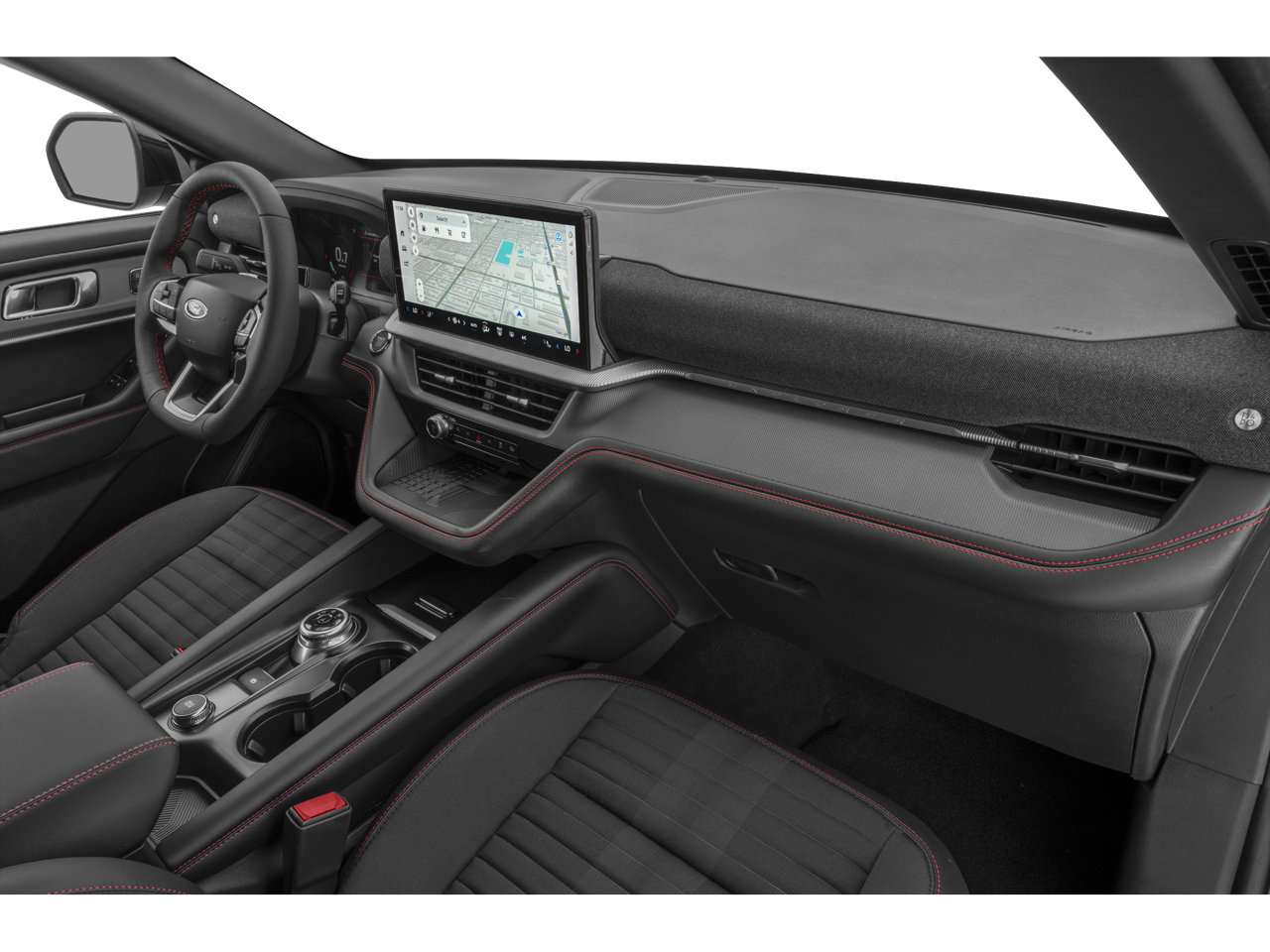 2025 Ford Explorer ST-Line Red Metallic 10 Speakers, 110V/150W AC Power Outlet, 2nd Row Captain's Chairs w/E-Z Entry & Armrest, 2nd Row Heated Seats, 3.58 Non-Limited Slip Rear Axle, 3rd row seats: bench, 4-Wheel Disc Brakes, ABS brakes, Air Conditioning, Alloy wheels, AM/FM radio: SiriusXM with 360L, Ambient Lighting, Apple CarPlay/Android Auto, Auto High-beam Headlights, Auto-Dimming Interior Rear-View Mirror, Automatic temperature control, Black Painted Roof, Brake assist, Bumpers: body-color, Compass, Delay-off headlights, Driver door bin, Driver vanity mirror, Dual front impact airbags, Dual front side impact airbags, Electronic Stability Control, Emergency communication system: 911 Assist, Equipment Group 300A Standard Package, Exterior Parking Camera Rear, Four wheel independent suspension, Front anti-roll bar, Front Bucket Seats, Front Center Armrest, Front dual zone A/C, Front fog lights, Front reading lights, Fully automatic headlights, Garage door transmitter, Heated door mirrors, Heated front seats, Heated steering wheel, Heated Unique Cloth Captain's Chairs, Illuminated entry, Internet access capable: FordPass Connect 5G, Knee airbag, Leather steering wheel, Low tire pressure warning, Memory Driver's Seat, Navigation System, Occupant sensing airbag, Outside temperature display, Overhead airbag, Overhead console, Panic alarm, Passenger door bin, Passenger vanity mirror, Performance Brakes, Power door mirrors, Power driver seat, Power Liftgate, Power passenger seat, Power steering, Power windows, Power-Folding Sideview Mirrors w/Autofold, Premium Package, Radio: B&O Sound System by Bang & Olufsen, Rain-Sensing Wipers (Front Only), Rear air conditioning, Rear anti-roll bar, Rear reading lights, Rear window defroster, Rear window wiper, Red Painted Perf Front & Rear Brake Calipers, Remote keyless entry, Security system, Speed control, Speed-sensing steering, Speed-Sensitive Wipers, Split folding rear seat, Spoiler, ST-Line Street Pack, Steering wheel mounted audio controls, Tachometer, Telescoping steering wheel, Tilt steering wheel, Traction control, Trip computer, Variably intermittent wipers, Wheels: 20 Ebony-Painted Machined Aluminum, Wheels: 21 Magnetite-Painted Aluminum, Wireless Charging Pad.